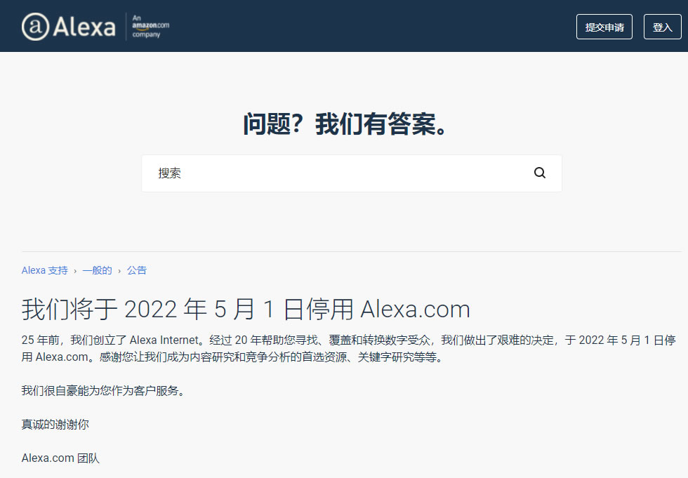 亞馬遜宣布明年5月關(guān)停Alexa.com