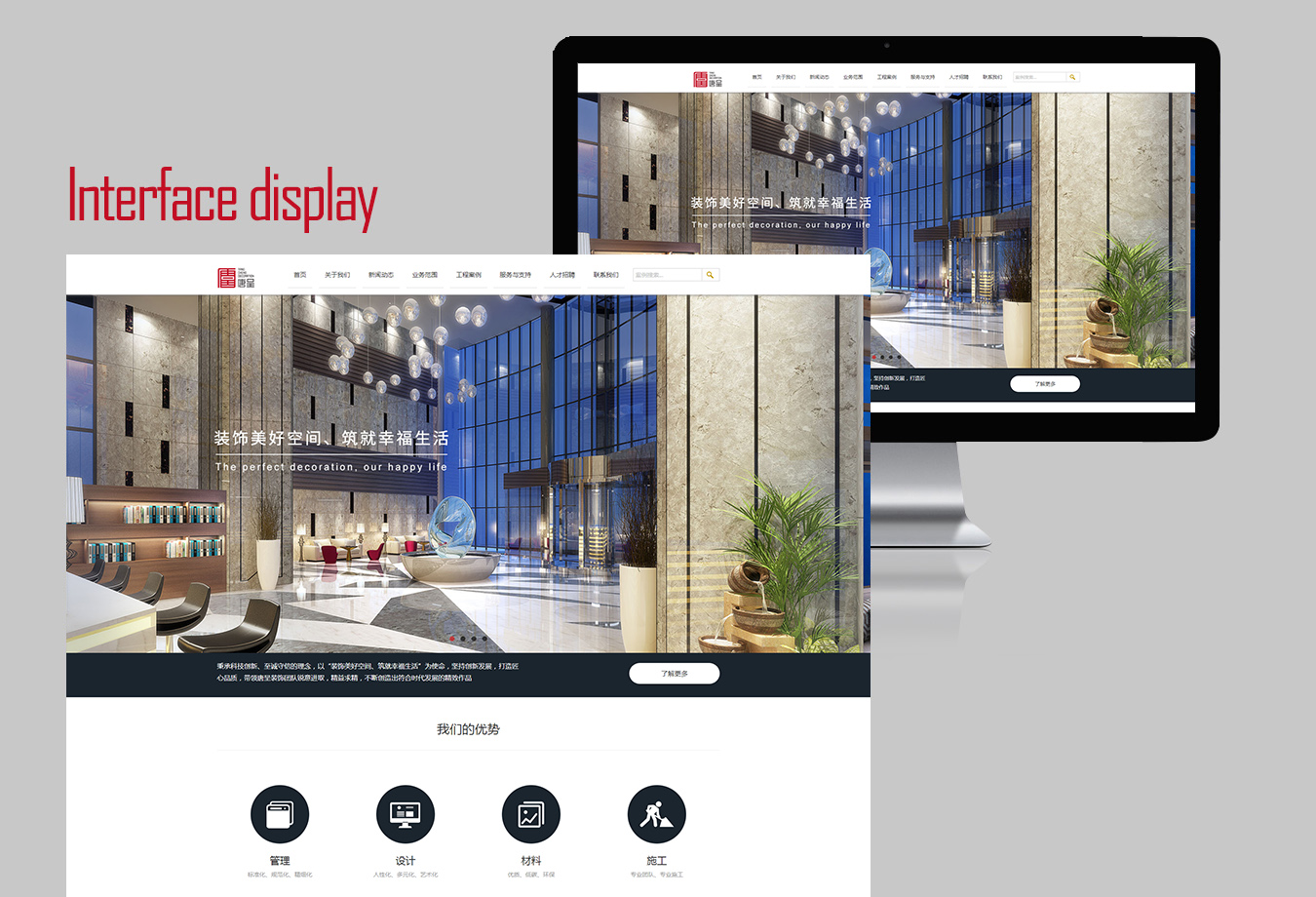 上海唐呈裝飾工程有限公司是一家集設(shè)計(jì)、采購、施工為一體的專業(yè)化建筑裝飾企業(yè)。公司本著“信用創(chuàng)建市場、匠人拼搏精神“的企業(yè)理念,以品牌建設(shè)為核心,致力于注重細(xì)節(jié),以追求精致、塑造精品的宗旨,展現(xiàn)精湛工藝,努力創(chuàng)造美感空間,將唐呈裝飾打造成一塊用戶值得信賴的品牌。